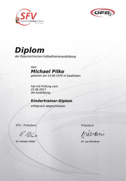 UEFA Elite Junioren-A-Lizenz, UEFA-B-Diplom (guter Erfolg), UEFA-Junioren-B-Diplom (guter Erfolg), C & D Diplom, Hochschulzertifikat - Spielanalyst im professionellen Fußball